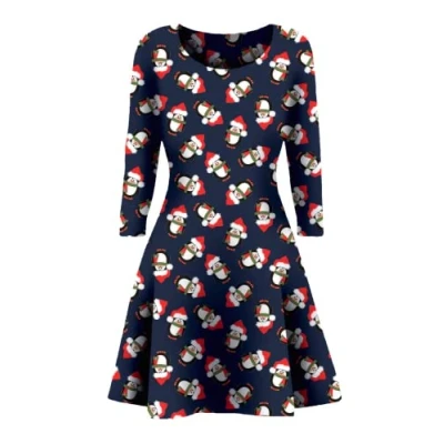 STAR FASHION Women Christmas Party Dress Snowman Swing Novelty Printed Skater Xmas Secret Santa Gift for Ladies Penguin Ver 4 12 14