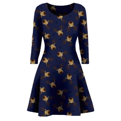 STAR FASHION Women Christmas Party Dress Snowman Swing Novelty Printed Skater Xmas Secret Santa Gift for Ladies Rudolf 0048 20 22