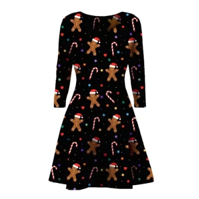 STAR FASHION Women Christmas Party Dress Snowman Swing Novelty Printed Skater Xmas Secret Santa Gift for Ladies SF0188 16 18