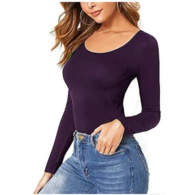 STAR FASHION Summer Collection Includes: Plain Round Neck Long Sleeve Basic Top T-Shirt made from Soft Stretchy Comfortable Material (95% Viscose, 5% Elastane) Slim Fit and Stretchy. Approximately Length: 70cm STYLISH & FASHIONABLE: Long Sleeve Round Neck T-Shirts Vest Top is best option to wear in any season as it keeps you so comfy. Style this V neck long sleeve stretchy t-shirt with Tight Denim, Skinny Leggings, Long or Short Pencil Skirt, and baggy denim jackets.go. CASUAL WEAR: It is lightweight & breathable; these women's T-Shirts are the best option for everyday use when you just want to throw something on and go. The perfect combination of comfort and style. BEST OCCASIONAL WEAR: This Basic Fit Plain Top can keep you cool and gives modern touch in classic style. Comfortable to wear at Office, Vocations, Party, Evening Casual Club, Travel, Home, Beach, Holiday and etc. Garment Care: Machine Washable. Made in UK. Color may slightly vary from pictures. A range of colors and sizes (UK 8-10 12-14 16-18 20-22 24-26) are available to choose from. Select your dream color. Return Accepted.