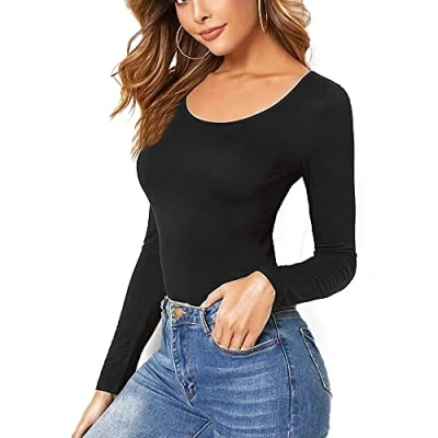 STAR FASHION Summer Collection Includes: Plain Round Neck Long Sleeve Basic Top T-Shirt made from Soft Stretchy Comfortable Material (95% Viscose, 5% Elastane) Slim Fit and Stretchy. Approximately Length: 70cm STYLISH & FASHIONABLE: Long Sleeve Round Neck T-Shirts Vest Top is best option to wear in any season as it keeps you so comfy. Style this V neck long sleeve stretchy t-shirt with Tight Denim, Skinny Leggings, Long or Short Pencil Skirt, and baggy denim jackets.go. CASUAL WEAR: It is lightweight & breathable; these women's T-Shirts are the best option for everyday use when you just want to throw something on and go. The perfect combination of comfort and style. BEST OCCASIONAL WEAR: This Basic Fit Plain Top can keep you cool and gives modern touch in classic style. Comfortable to wear at Office, Vocations, Party, Evening Casual Club, Travel, Home, Beach, Holiday and etc. Garment Care: Machine Washable. Made in UK. Color may slightly vary from pictures. A range of colors and sizes (UK 8-10 12-14 16-18 20-22 24-26) are available to choose from. Select your dream color. Return Accepted.