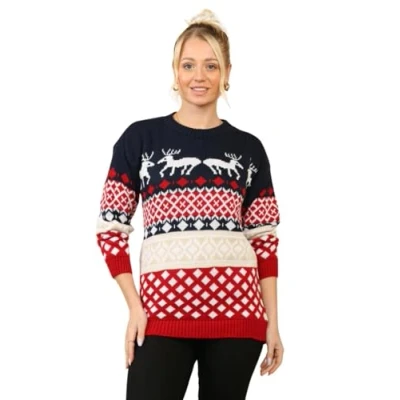 STAR FASHION Women/Ladies Men Unisex Christmas Jumper Knitted Xmas Sweater Aztec All Over Reinder 8 10