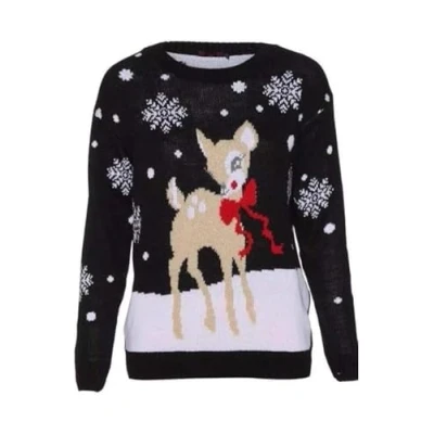 STAR FASHION Women/Ladies Men Unisex Christmas Jumper Knitted Xmas Sweater Bambi Black 8 10