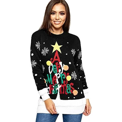 STAR FASHION Women/Ladies Men Unisex Christmas Jumper Knitted Xmas Sweater Merry Black 8 10