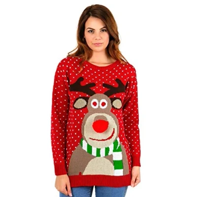 STAR FASHION Women/Ladies Men Unisex Christmas Jumper Knitted Xmas Sweater Rudolph Pom Red 8 10