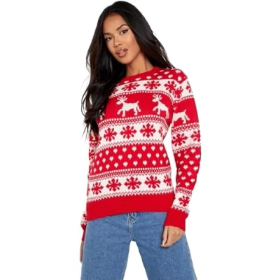 STAR FASHION Women/Ladies Men Unisex Christmas Jumper Knitted Xmas Sweater Snowfalke Red 16 18