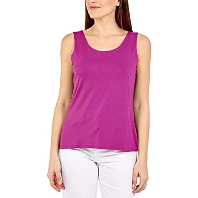 STAR FASHION Women Ladies Plain Sleeveless Vest Scoop Neck Top Solid Style Stretchy Tank Tops Super Soft Casual Sport Gym Vests/Shirts Cerise UK 24 26