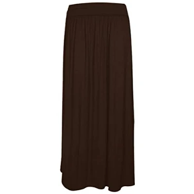 STAR FASHION Women Ladies Pleated Fold Over Long Maxi High Waist Plain Gypsy Skirt Girls Summer Casual Party Wear Elasticated Stretchy Full Length Jersey UK Sizes 8 32 Brown