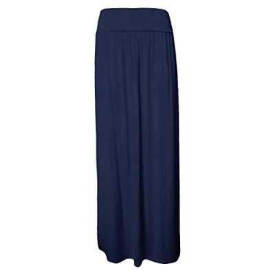 STAR FASHION Women Ladies Pleated Fold Over Long Maxi High Waist Plain Gypsy Skirt Girls Summer Casual Party Wear Elasticated Stretchy Full Length Jersey UK Sizes 8 57 Navy