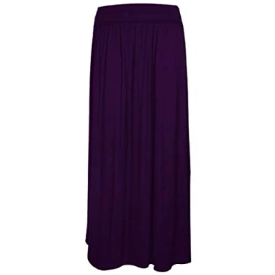 STAR FASHION Women Ladies Pleated Fold Over Long Maxi High Waist Plain Gypsy Skirt Girls Summer Casual Party Wear Elasticated Stretchy Full Length Jersey UK Sizes 8 59 Purple
