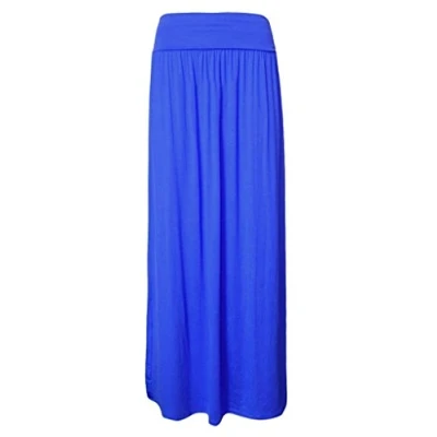 STAR FASHION Women Ladies Pleated Fold Over Long Maxi High Waist Plain Gypsy Skirt Girls Summer Casual Party Wear Elasticated Stretchy Full Length Jersey UK Sizes 8 70 Royal Blue
