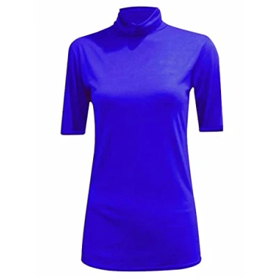 STAR FASHION Women/Ladies Turtle Polo High Roll Neck Causal Vest Top ¾ Short Sleeve Plain Stretch Soft Material T Shirts Jumper Blue