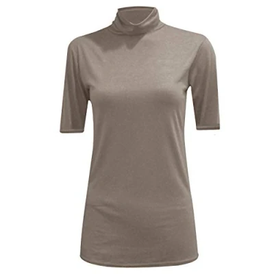 STAR FASHION Women/Ladies Turtle Polo High Roll Neck Causal Vest Top ¾ Short Sleeve Plain Stretch Soft Material T Shirts Jumper Mocha
