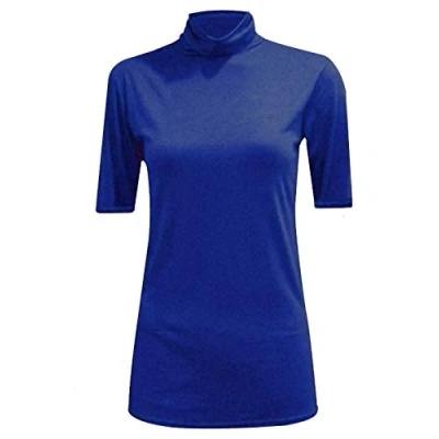 STAR FASHION Women/Ladies Turtle Polo High Roll Neck Causal Vest Top ¾ Short Sleeve Plain Stretch Soft Material T Shirts Jumper Navy