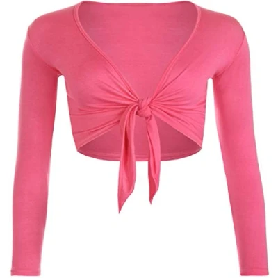 STAR FASHION Women Long Sleeves Shrugs Tie Up Open Front Top Ladies Summer Crop Bolero Cardigan Dress Cerise 8 10
