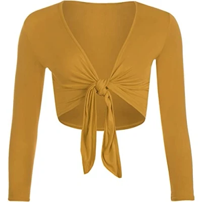 STAR FASHION Women Long Sleeves Shrugs Tie Up Open Front Top Ladies Summer Crop Bolero Cardigan Dress Mustard 12 14