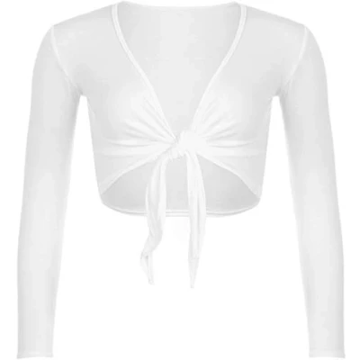STAR FASHION Women Long Sleeves Shrugs Tie Up Open Front Top Ladies Summer Crop Bolero Cardigan Dress White 8 10