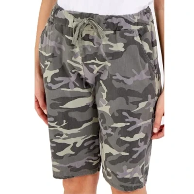 STAR FASHION Women’s Italian Camouflage Print Elastic Waist Magic Shorts Ladies Knee Length 3/4 Cropped Trousers Turn Up Side Pockets Drawstring Belt Summer Beach Pants Short Pajamas Khaki