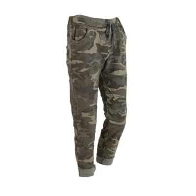 STAR FASHION Women's Italian Elastic Waist Trouser Plain Magic Pants Army Camouflage Print Ladies Casual Active Yoga Joggers Side Pockets Drawstring Belt Trousers UK 8 85