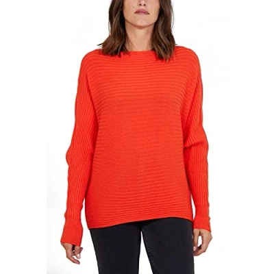 STAR FASHION Women’s Ladies Ribbed Batwing Jumper/Sweater Boat Neck Loose Knitted Baggy Pullover Blouses Sweatshirts Tops Soft Knitwear One Size (UK_ 10 18) Burnt Orange
