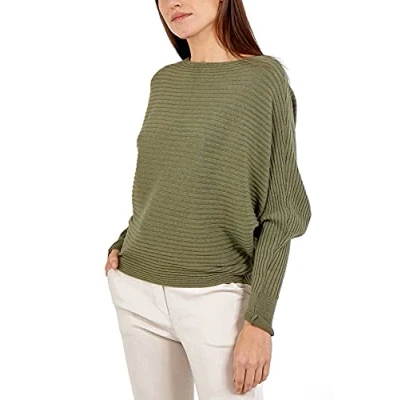 STAR FASHION Women’s Ladies Ribbed Batwing Jumper/Sweater Boat Neck Loose Knitted Baggy Pullover Blouses Sweatshirts Tops Soft Knitwear One Size (UK_ 10 18) Khaki