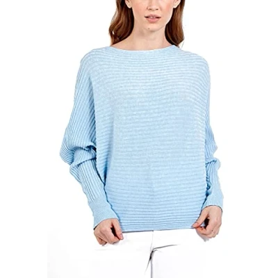 STAR FASHION Women’s Ladies Ribbed Batwing Jumper/Sweater Boat Neck Loose Knitted Baggy Pullover Blouses Sweatshirts Tops Soft Knitwear One Size (UK_ 10 18) Light Blue