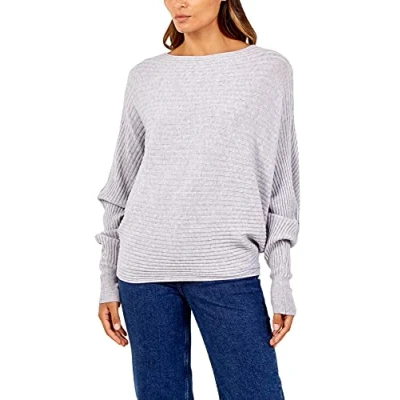 STAR FASHION Women’s Ladies Ribbed Batwing Jumper/Sweater Boat Neck Loose Knitted Baggy Pullover Blouses Sweatshirts Tops Soft Knitwear One Size (UK_ 10 18) Light Grey