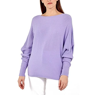STAR FASHION Women’s Ladies Ribbed Batwing Jumper/Sweater Boat Neck Loose Knitted Baggy Pullover Blouses Sweatshirts Tops Soft Knitwear One Size (UK_ 10 18) Lilac