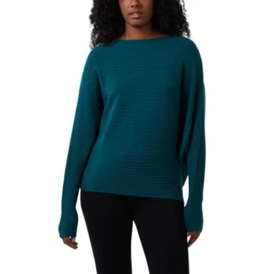 STAR FASHION Women’s Ladies Ribbed Batwing Jumper/Sweater Boat Neck Loose Knitted Baggy Pullover Blouses Sweatshirts Tops Soft Knitwear One Size UK 10 18 Teal