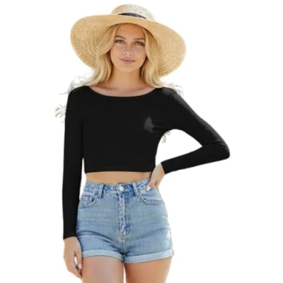 Cropped Fit: Slim design sits above the waist for a trendy look. Length: Approx. 42 cm Soft Stretch: Breathable viscose blend for a lightweight, flexible feel. Classic Style: Long sleeves and a round neck for a clean, daily look. Versatile Staple: Pairs easily with jeans, skirts, or cargo trousers. Show Off Your Midriff with this Stunning Crop with Smooth fabric for a soft feel from day to night.