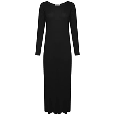 STAR FASHION Women’s Long Sleeve Maxi Dress Stretchy Ladies Plain Jersey Round Neck Casual Style Plus Size UK 8 26 Black 24