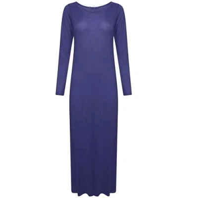 STAR FASHION Women’s Long Sleeve Maxi Dress Stretchy Ladies Plain Jersey Round Neck Casual Style Plus Size UK 8 26 Navy