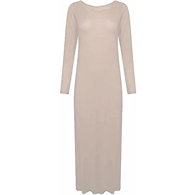 STAR FASHION Women’s Long Sleeve Maxi Dress Stretchy Ladies Plain Jersey Round Neck Casual Style Plus Size UK 8 26 Stone 12 14
