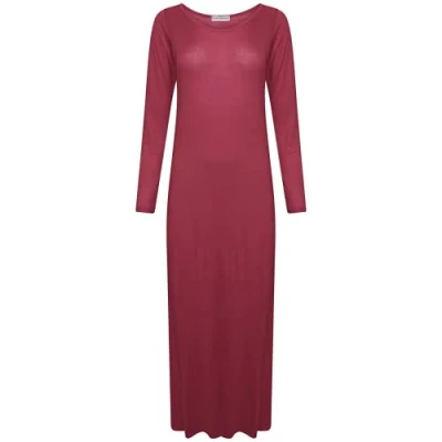 STAR FASHION Women’s Long Sleeve Maxi Dress Stretchy Ladies Plain Jersey Round Neck Casual Style Plus Size UK 8 26 Wine