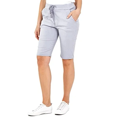 STAR FASHION Women’s New Italian Plain Elastic Waist Magic Shorts Ladies Knee Length 3/4 Cropped Trousers Turn Up Side Pockets Drawstring Belt Summer Beach Pants Short Pajamas Grey 12 14