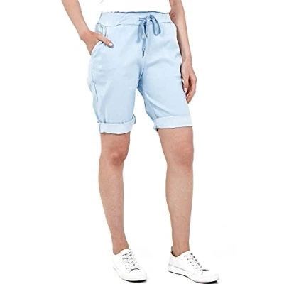 Our Brand New Womens Italian Elastic Waist Magic Shorts Has a Very Unique, Simple, and Classic Design Which Looks Very Stylish. It is a Perfect Gift For Your Girlfriend, Sister, Cousin, etc. This Stylish Knee Length Italian Magic Shorts Looks Perfect and are Suitable on Many Occasions Such as Shopping, Parties, School, Walking, Birthday Parties, Office Work, Dating, Casual, and Many Other Different Occasions. This Modern Italian 3/4 Cropped Trouser is Made Of Very High and Premium Quality Material (95% Cotton, 5% Elastane) Which is Very Soft, Stretchy, Comfortable, Easy To Wear, Skin-Friendly, and Breathable. Ladies' Italian Plain Elastic Waist Magic Shorts Features 3/4 Cropped Trouser Style, Turn Up, Side Pockets, and Drawstrings, Ideal For Summer Beach Parties, and Short Pajamas, This Magic Short is Best To Add to Your Wardobe Collections. Our Italian Magic Short is Available in Various Sizes From 8 To 18. This Knee Length Short is Available in 23 Different Beautiful and Elegant Colors Which Will Suit Your Personality.