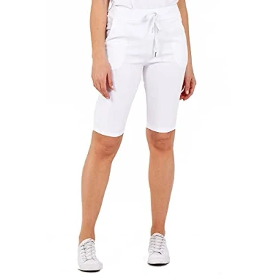 STAR FASHION Women’s New Italian Plain Elastic Waist Magic Shorts Ladies Knee Length 3/4 Cropped Trousers Turn Up Side Pockets Drawstring Belt Summer Beach Pants Short Pajamas White 16 18