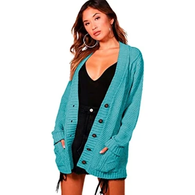 STAR FASHION Women's Open Front Five Button Grandad Cardigans Chunky Cable Knitted Long Sleeve Winter Tops Sweaters Jumpers Size UK 8 26 Turquoise
