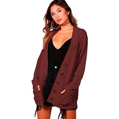 STAR FASHION Women's Open Front Five Button Grandad Cardigans Chunky Cable Knitted Long Sleeve Winter Tops Sweaters Jumpers Size UK 8 26 Wine
