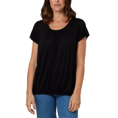 STAR FASHION Women’s Plain Gypsy Scoop Neck Elastic Waist Cap Sleeve Vest Top Ladies Loose Fit Balloon Pleated Blouse Shirts Elasticated Stretch Summer Jersey 24 26 Black