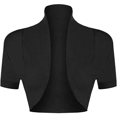 STAR FASHION Women’s Short Sleeve Stretchy Ribbed Bolero Shrug Ladies Collared Plain Design Crop Cardigan Top Open Front Shrugs UK Size 8 14 Black