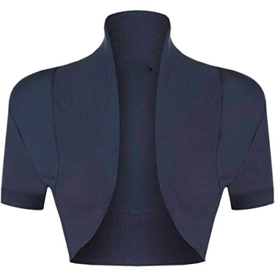 STAR FASHION Women’s Short Sleeve Stretchy Ribbed Bolero Shrug Ladies Collared Plain Design Crop Cardigan Top Open Front Shrugs UK Size 8 14 Navy Blue