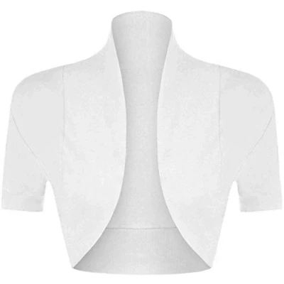 STAR FASHION Women’s Short Sleeve Stretchy Ribbed Bolero Shrug Ladies Collared Plain Design Crop Cardigan Top Open Front Shrugs UK Size 8 14 White