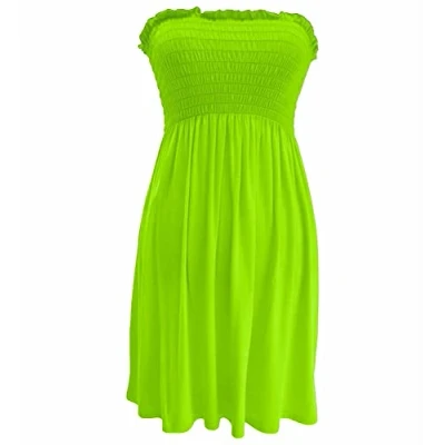 STAR FASHION Women Strapless Sheering Top Plain Bandeau Boob Tube Sleeveless Sharing Shorts Midi Dress Neon Green UK 16 18