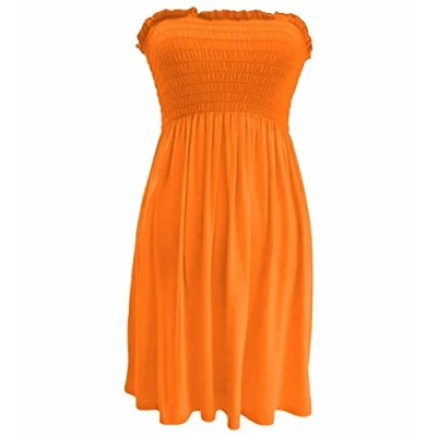 STAR FASHION Women Strapless Sheering Top Plain Bandeau Boob Tube Sleeveless Sharing Shorts Midi Dress Neon Orange UK 16 18