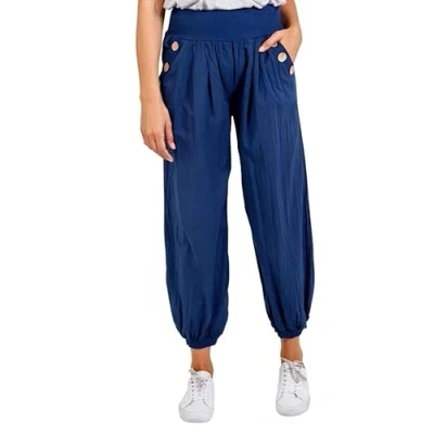 STAR FASHION Womens 3 Button Pocket Detail Harem Pants Ladies Elastic Waist Cuffed Cotton Trousers Jogging Bottom Navy