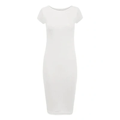 STAR FASHION Womens Cap Sleeve Bodycon Midi Dress Ladies Wiggle Pencil Round Neck Long Stretch Maxi Plus Size Casual Party Wear Cream
