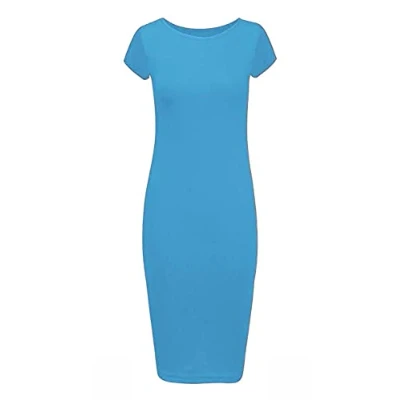 STAR FASHION Womens Cap Sleeve Bodycon Midi Dress Ladies Wiggle Pencil Round Neck Long Stretch Maxi Plus Size Casual Party Wear Turquoise