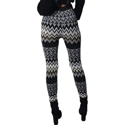 STAR FASHION Womens Full Length Knitted Leggings Ladies Thick Warm Printed Knitwear Legging Winter Wear Bottoms Zigzag Print Charcoal