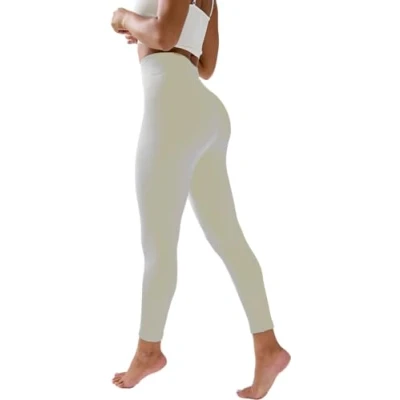 STAR FASHION Womens High Waist Ribbed Gym Leggings Plus Size Ladies Full Length Legging Warm Winter Wear Bottoms Yoga Pants Cream 12 14